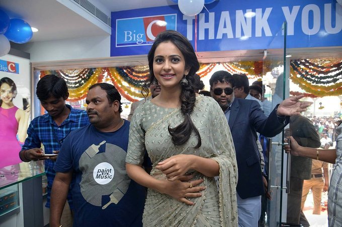 Tollywood Actress Rakul Preet Singh Stills In Traditional Green Saree